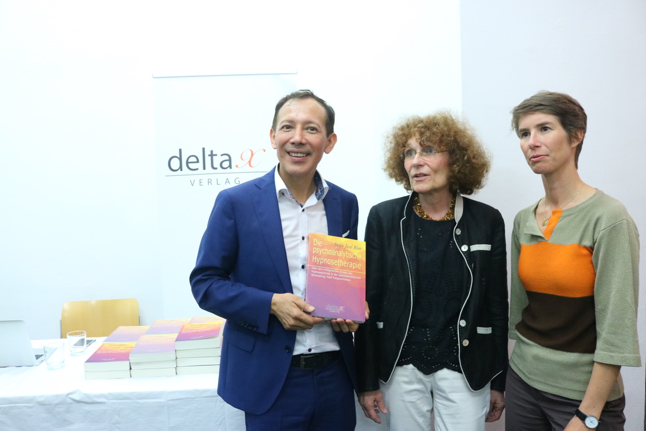 Wien. Mehr als 60 Gäste waren zur Buchpräsentation von Juan Jose Rios, „Die psychoanalytische Hypnosetherapie“ ins Sigmund Freud Museum in der berühmten Berggasse 19 gekommen. Vorgestellt wurde der Inhalt des neuen Buches des Delta X Verlages in einer spannenden Podiumsdiskussion. Dr. Rios diskutierte dabei mit der wissenschaftlichen Leiterin des Sigmund Freud Museums, Frau Dr. Daniela Finzi. ORF Ö1 Wissenschaftsredakteurin Dr. Margarethe Engelhardt-Krajanek moderierte die Veranstaltung in perfekter Manier.